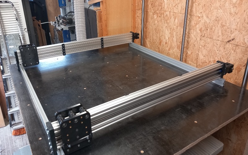 Het frame voor de Qteez CNC wordt mede opgebouwd met de eerder gebouwde Y-assen.
