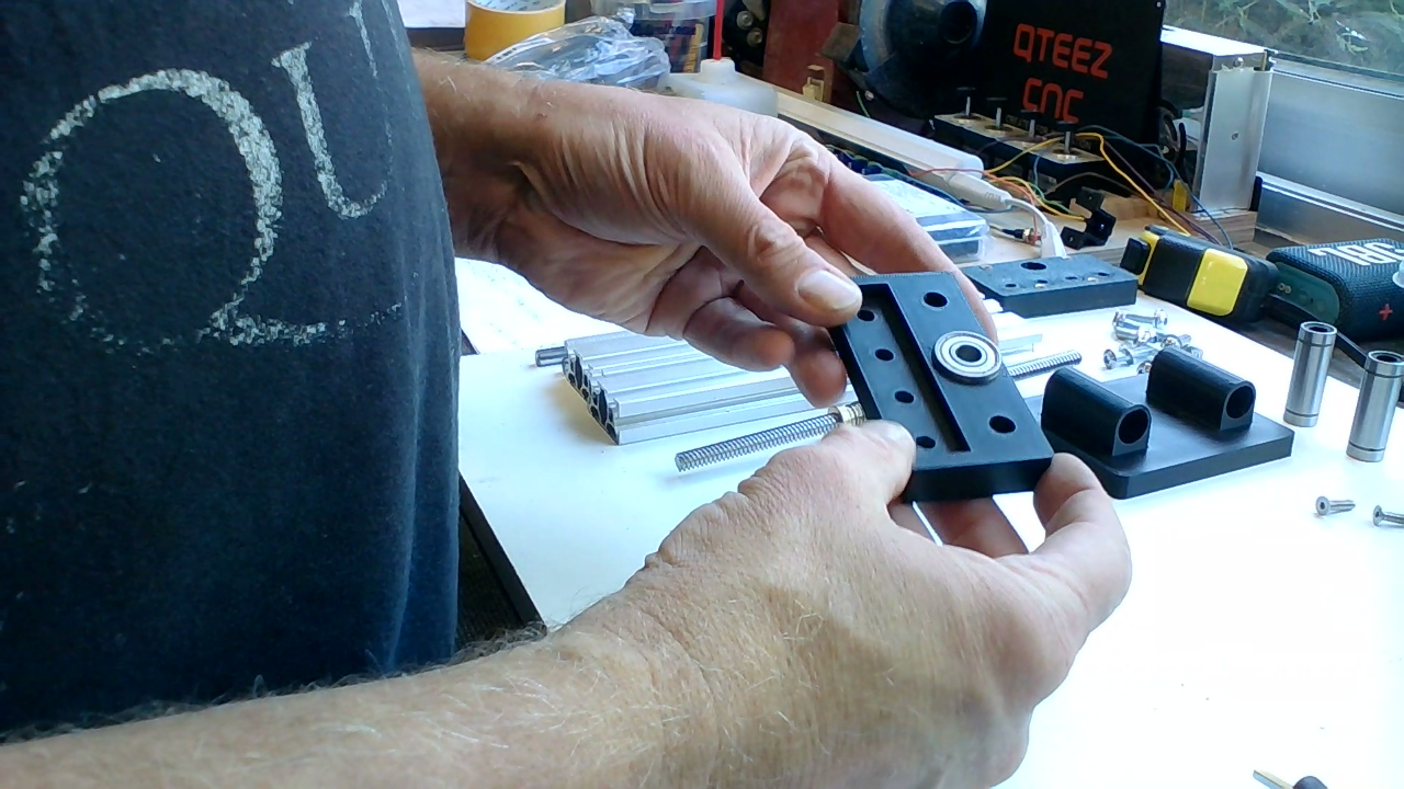 Plaats de leadscrew met moer, veer en de leadscrew-mount in de 608ZZ lager en druk de vier lineare lagers in de Z-gantry. Druk de lagers een paar millimeter verder in de Z-gantry voor een betere geleiding.