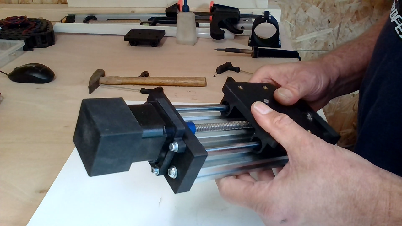 Bevestig dan de gantry aan de leadscrewmount met 2x M4x16 verzonken boutjes.