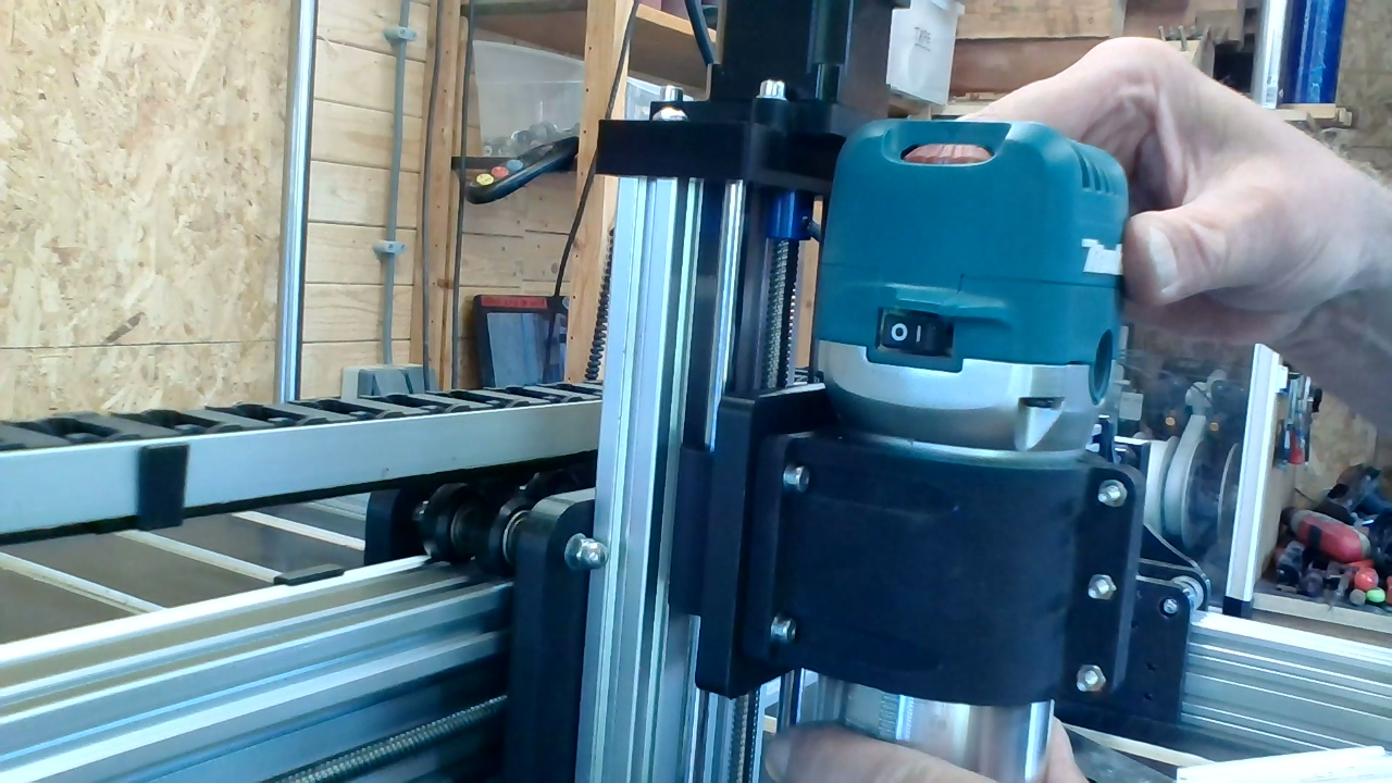 Schuif de Makita bovenfrees in de toolmount en schroef deze vast.
