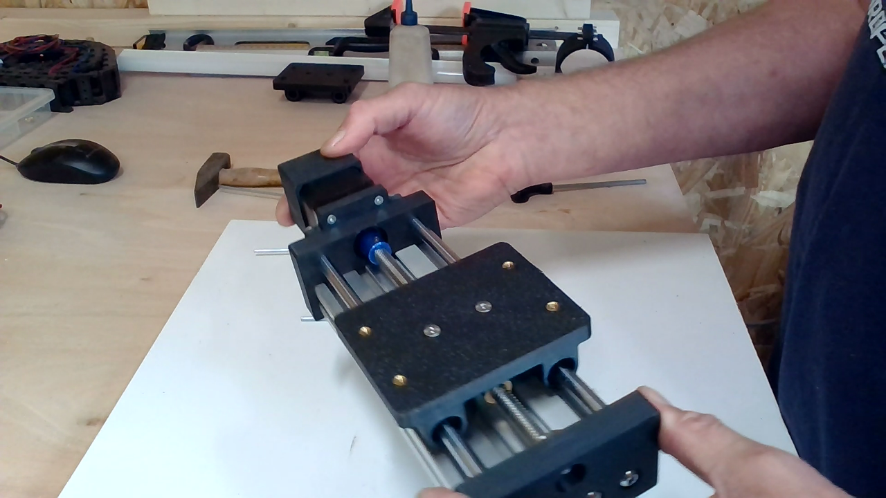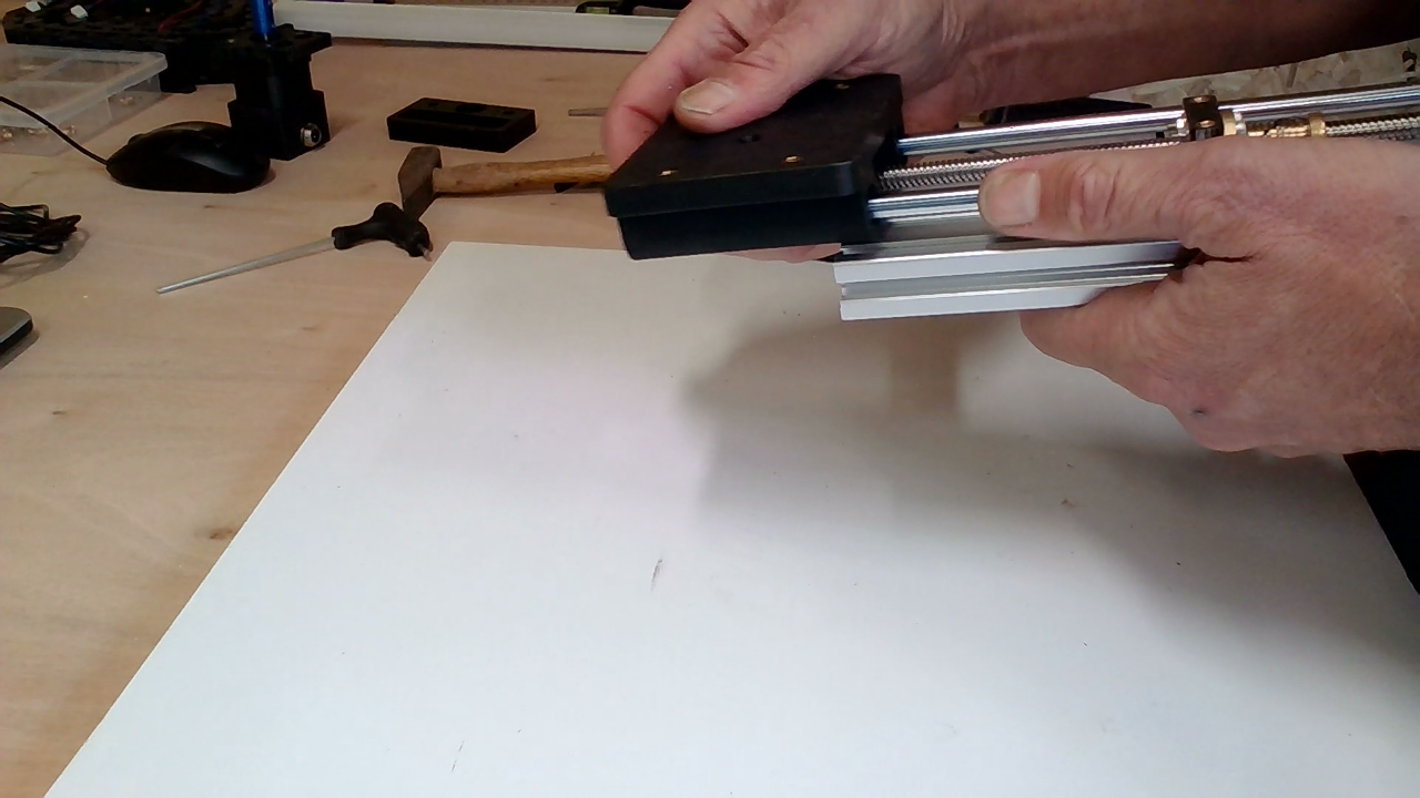 Schuif de gantry over de rods en controleer of deze soepel beweegt.